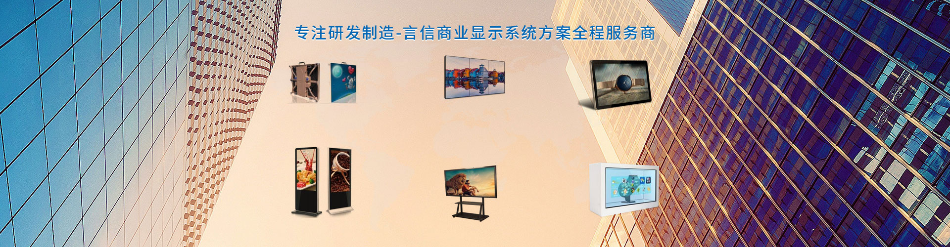 深圳言信電子科技有限公司是一家專業數字商用顯示設備集研發,生產,銷售和服務為一體的產品供應和顯示方案定制解決的科技企業。公司于2015年在成立深圳市言信電子科技有限公司,旗下擁有多家業務子公司。公司自成立以來一直恪守“誠信鑄就品質,創新引領未來”的經營理念,秉承“誠信、實惠、原創、信賴”的承諾,立足產業發展,放眼全球行業布局,以“共贏、共享”的經營方式,幫助客戶提升其行業競爭力。言信公司推出的“YeSing言之信”品牌商業顯示設備系列產品。攜手全球知名的LCD廠商致力打造高端,高性價比和優良的服務體驗的商業顯示設備和顯示工程方案供應商。核心系列產品主要包括:液晶拼接顯示屏、小間距高亮LED顯示屏、液晶監視器、室內外數字多媒體廣告機、觸控查詢一體機、教學和會議交互式一體機、透明液晶顯示柜和OLED多媒體設備等產品。產品通過和取得了3C、CE、FCC、RoSH、能效和ISO9001證書和測試報告,并獲得中國質量、服務、誠信5A級企業,質量檢驗、國家標準合格產品,中國名優產品等稱號。言信產品主要應用在政府機關、電力、能源、石油化工、軍隊、人防、公檢法、交通、通信等各企事業單位,也可以適用酒吧、酒店、KTV 、 商超,滿足客戶安防監控調度、應急指揮、展覽展示、教育培訓、會議等各行業顯示和宣傳需求。